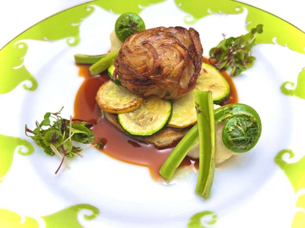 「お客様の微笑み」「生産者様の微笑み」「モナリザの微笑み」厳選した旬の素材、ゆかりの地より新しい素材を取り寄せ、伝統的な技法を守りつつ、当店ならではの新しさを織り込みひとつひとつの食材の味を引き出したモナリザオリジナルメニューで食べていただけるお客様の微笑みを生産者様への還元とさせていただいております。