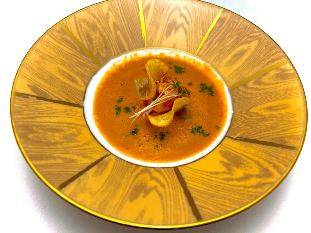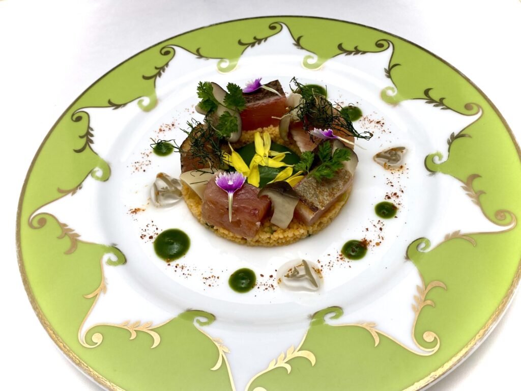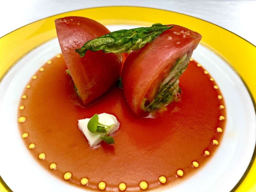 都心にありながら一軒家のような趣の空間は、ご家族、ご友人とのご会食や、パーティー、ウエディングなどに最適。ダイニング横の緑に囲まれたサロンでは、お子様連れでも心おきなくフレンチをお楽しみいただけます。オーナーシェフ自らデザインした、オリジナリティ溢れるお皿に盛りつけられた、伝統的でクリエイティブなお料理を、微笑みのひととき共にご堪能ください。